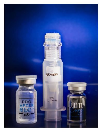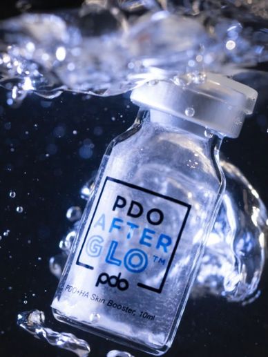 PDO AfterGlo™ is a hydrating skin booster made of PDO in powder form and Hyaluronic Acid (HA). HA can smooth rough surfaces and help skin retain moisture. The PDO powder is mixed with sterile water and HA and can be topically applied prior to microneedling treatments or after laser treatments.